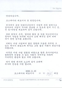 포스데이타 컨테이너 검색기준공 (부산, 군산) 감사편지