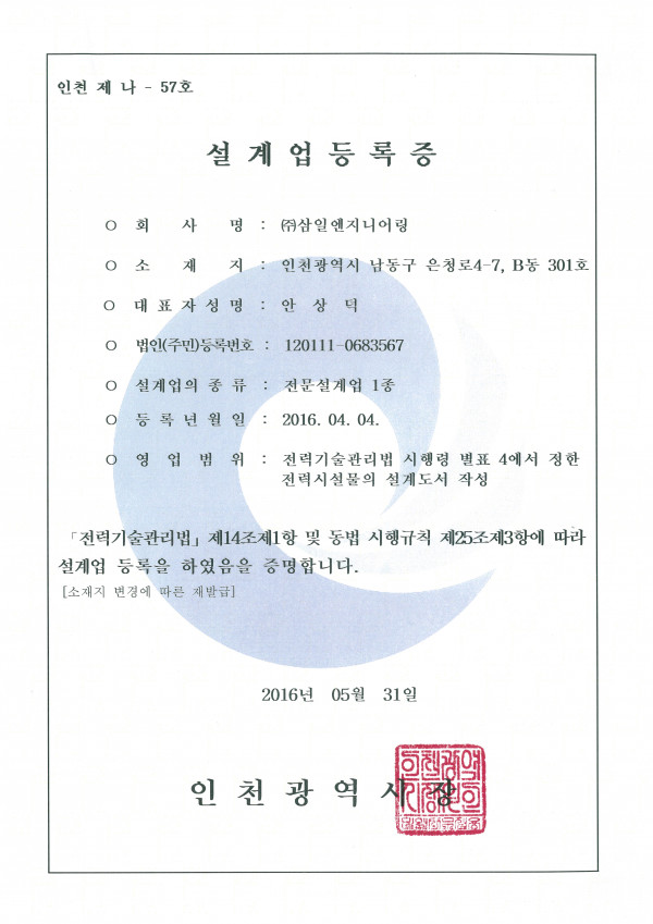 설계업등록증(1종) 페이지 정보 작성자 최고관리자 댓글 0건 조회 592회 작성일 19-03-22 13:43 본문 설계업등록증(1종) 목록 이전글감리업등록증 19.03.22 다음글비파괴검사업등록증 19.03.22