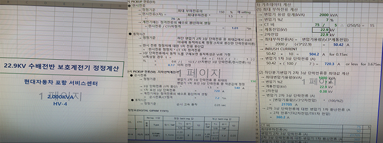수변전실 보호계전기 정정값계산 태양광 보호계전기 정정값계산 ESS 보호계전기 정정값계산